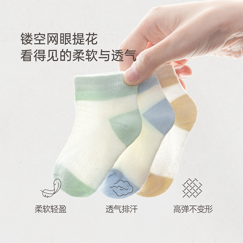 【天猫U先】babylove婴儿短袜夏季小袜子宝宝弹力短筒浅口袜3双装