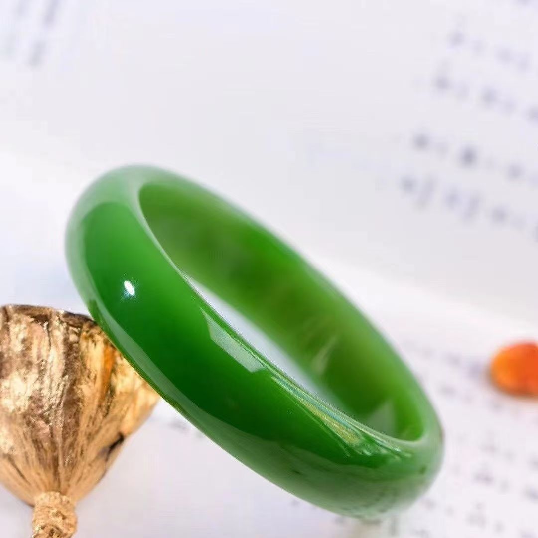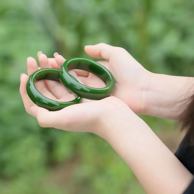花智宁和田玉菠菜绿碧玉手镯昆仑玉菠菜绿仿玉石镯子女款饰品礼物