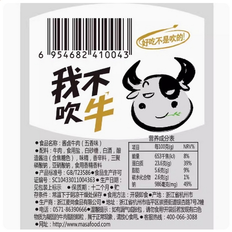 我不吹牛牛肉干五香香辣酱卤牛肉块粒麻辣香烤丝独立包装500g
