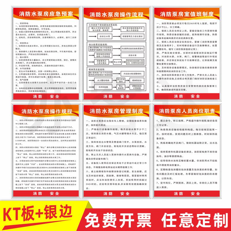 消防水泵房安全管理制度应急预案操作流程图值班室岗位职责全套物业医院工厂泵房控制室安全制度牌标识牌定制