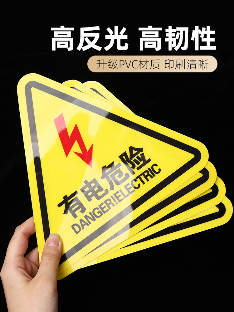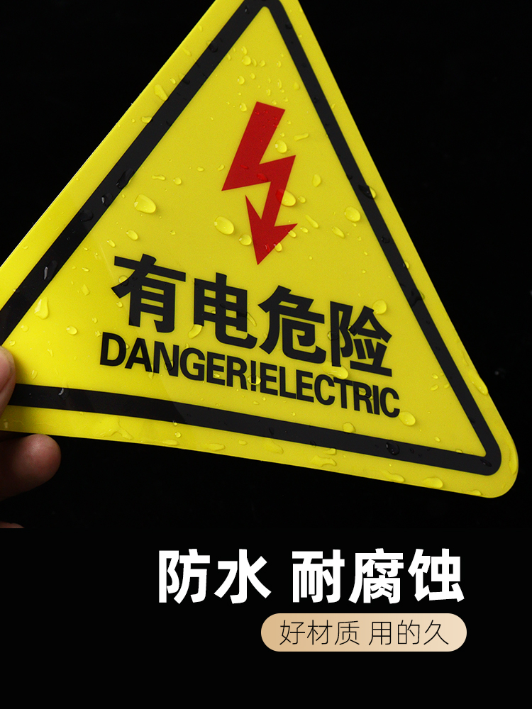 有电危险警示贴小心当心触电防机械设备安全标识牌生产用电配电箱闪电标志警告消防标牌高压注意标示提示贴纸