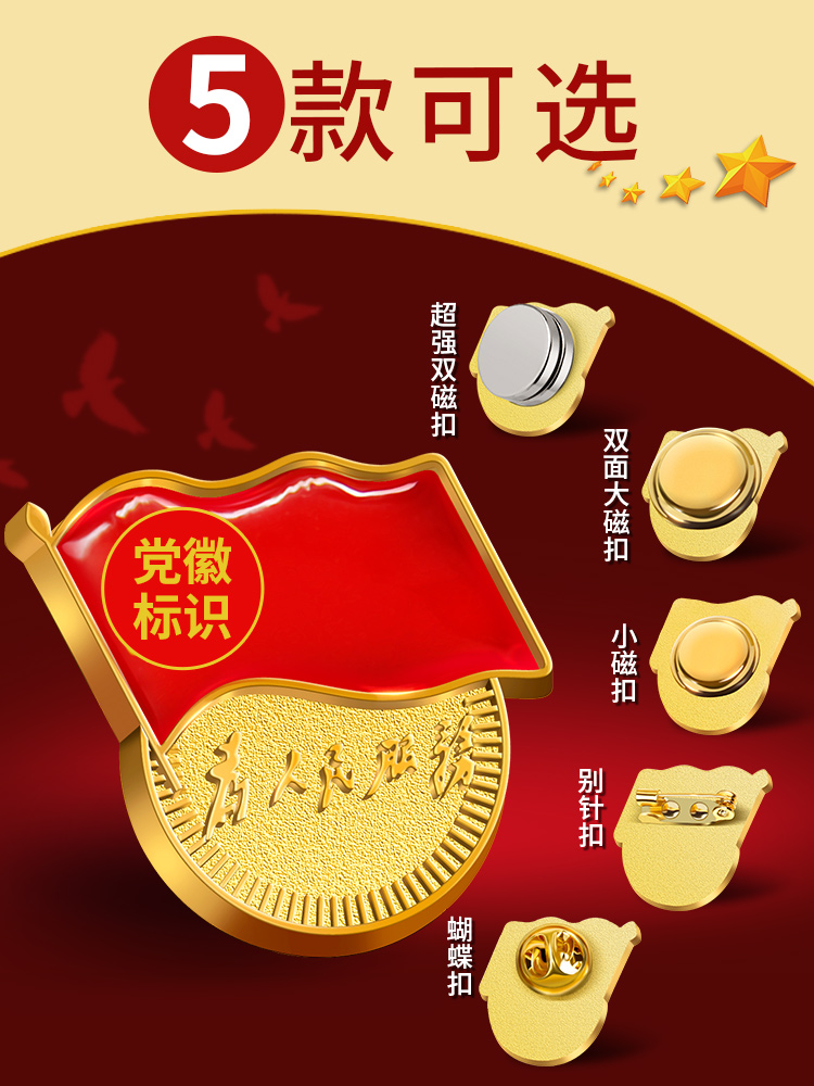 秋冬标准版党徽强磁新版胸针七一纪念品吸铁石磁吸别针加厚磁扣强力磁铁高档党员胸章徽章党章正版胸针最新版