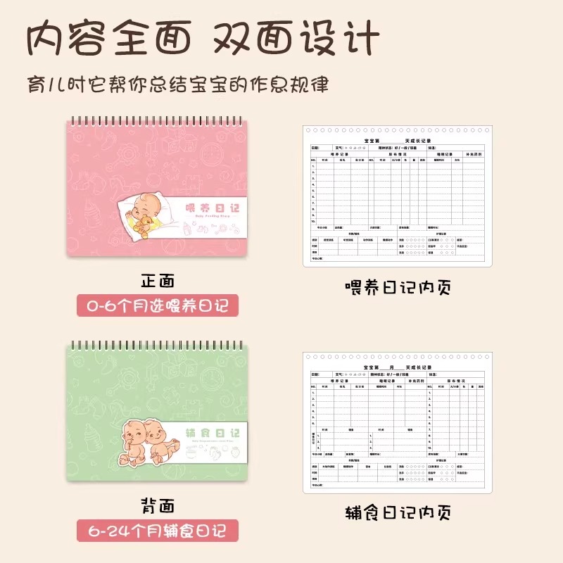 一本两用婴儿宝宝喂养记录本新生儿喂奶日记本每日作息月嫂手册辅食表格喝吃奶量哺乳笔记本母婴护理生活日志