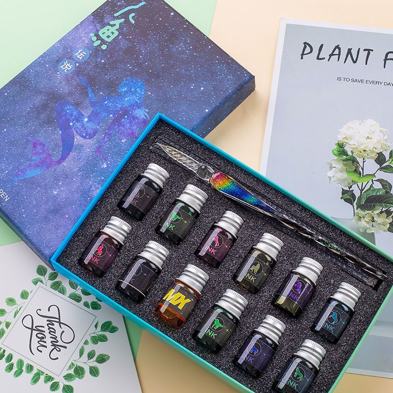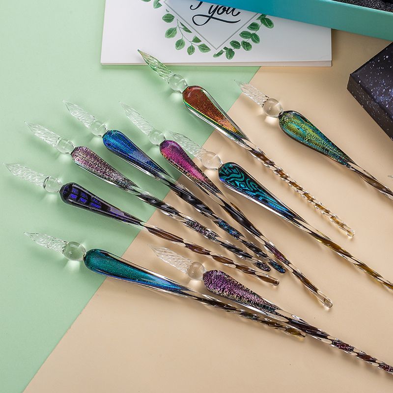水晶玻璃笔蘸水笔套装沾水彩墨复古勾线绘画手账礼盒学生礼物
