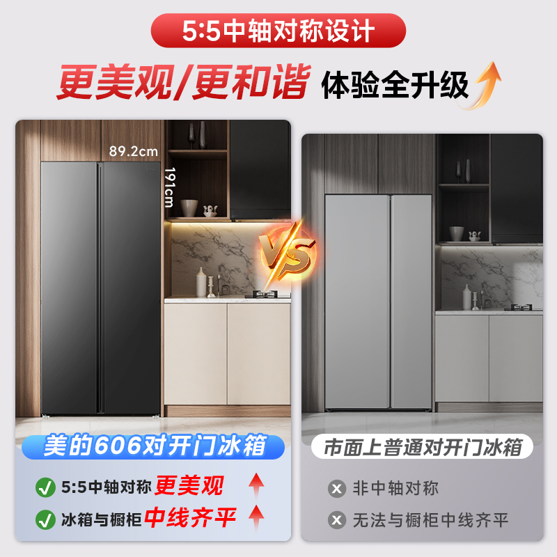 美的606对开双开门大容量超薄风冷无霜一级能效节能家用冰箱