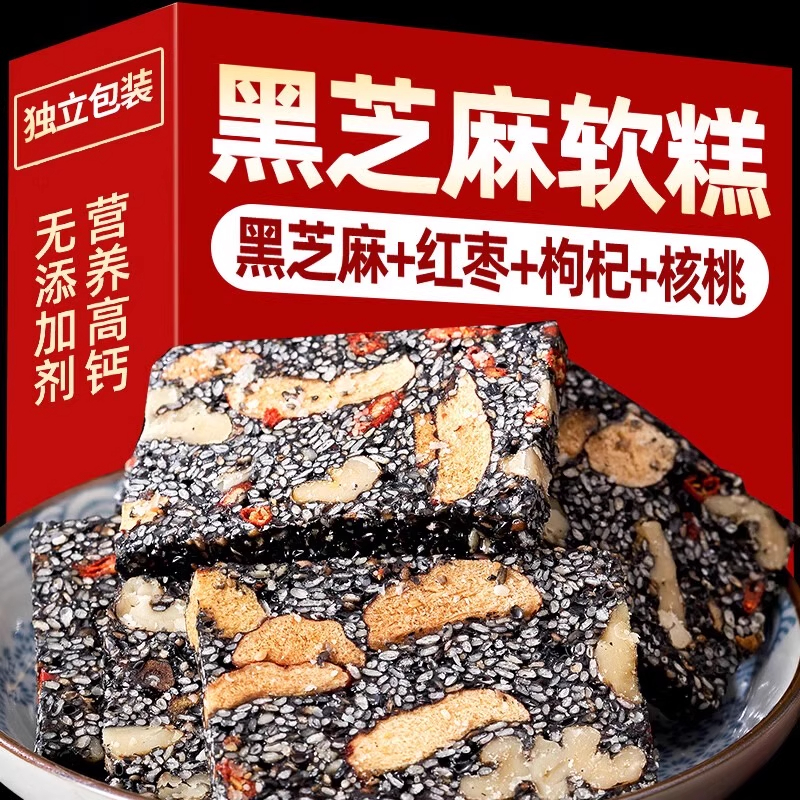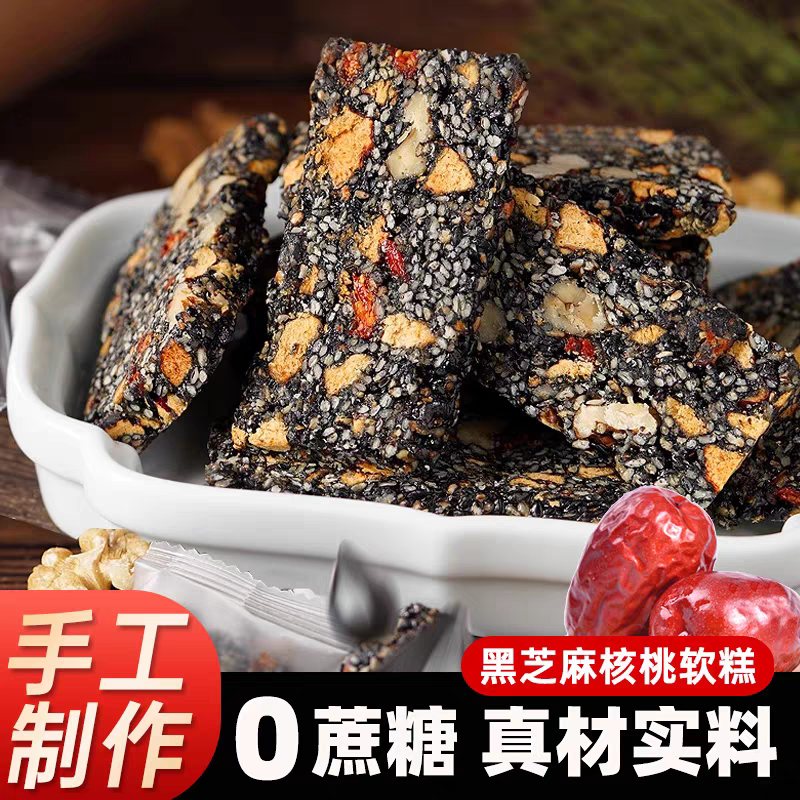 黑芝麻核桃仁软糕营养传统中式糕点枸杞红枣坚果切糕健康休闲零食