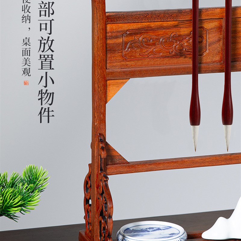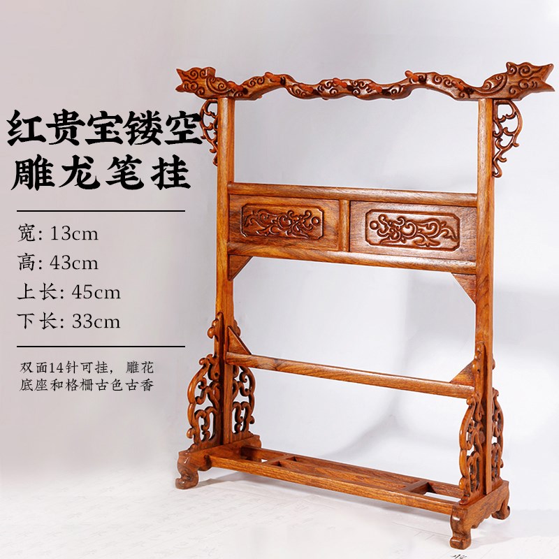毛笔架子实木花梨木毛笔挂架大笔挂雕龙红木博古架新中式摆件多功