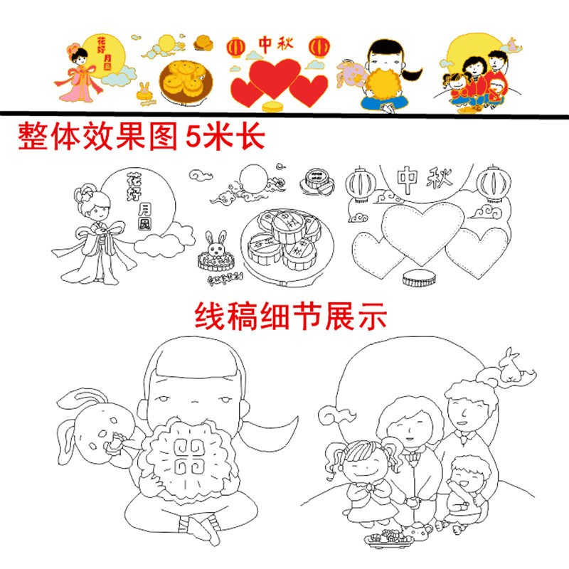 中秋节主题画布百米长画卷5米10米长带I线底稿幼儿活动童涂鸦画布