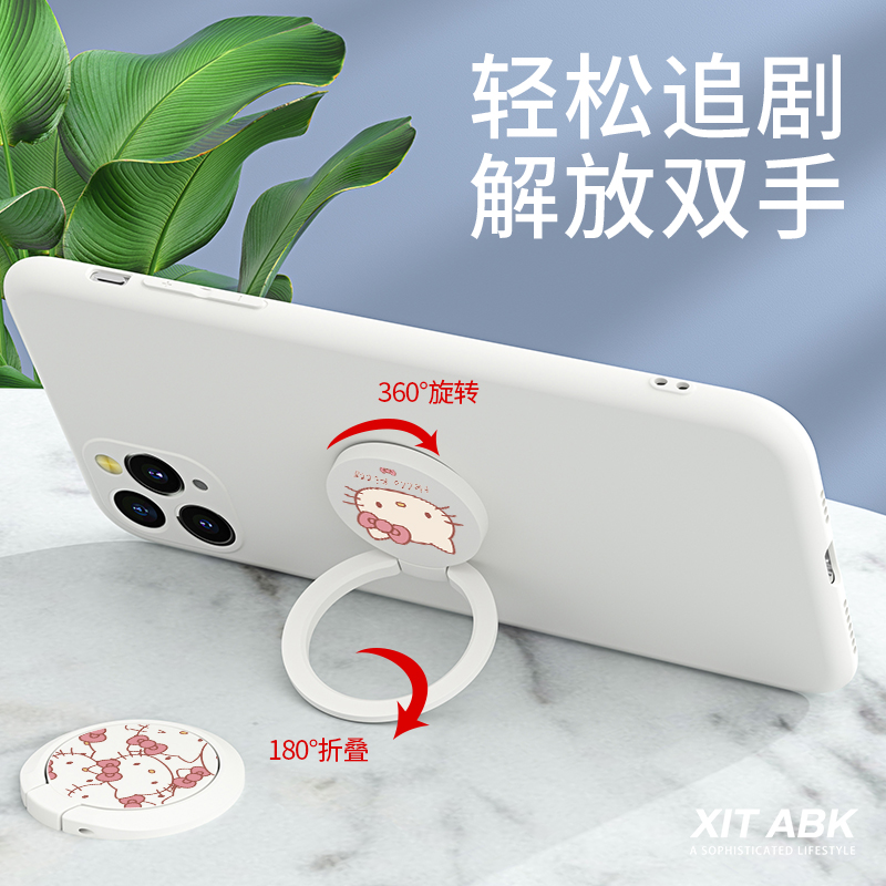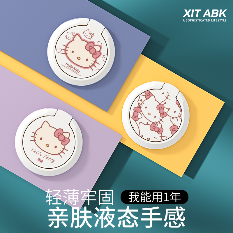 手机指环扣支架线条kitty猫懒人神器圆形单个装可折叠360度旋转桌面支撑架金属被磁吸超薄强力粘贴手机壳背贴