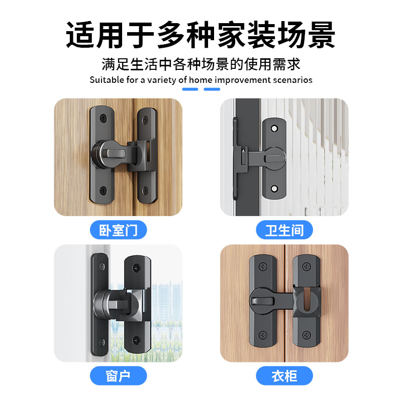 免打孔插销门栓搭扣推拉移门锁卡扣明装卫生间房门锁防盗门扣卧室
