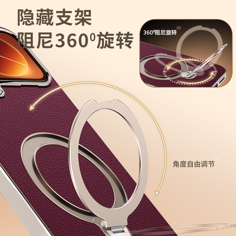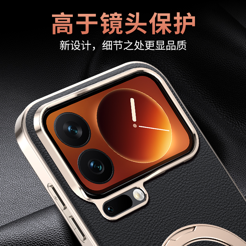 适用xiaomi小米17promax素皮手机壳轻薄散热17pro创意隐形旋转支点支架17软边防摔por高端商务肤感皮纹爆款