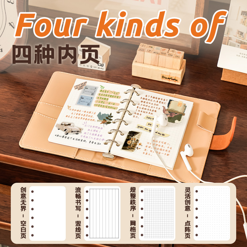 100g无酸纸/A7活页本手账本可拆卸小号随身便携口袋记事本打卡学习记录空白方格内页手帐日记本高颜值可定制