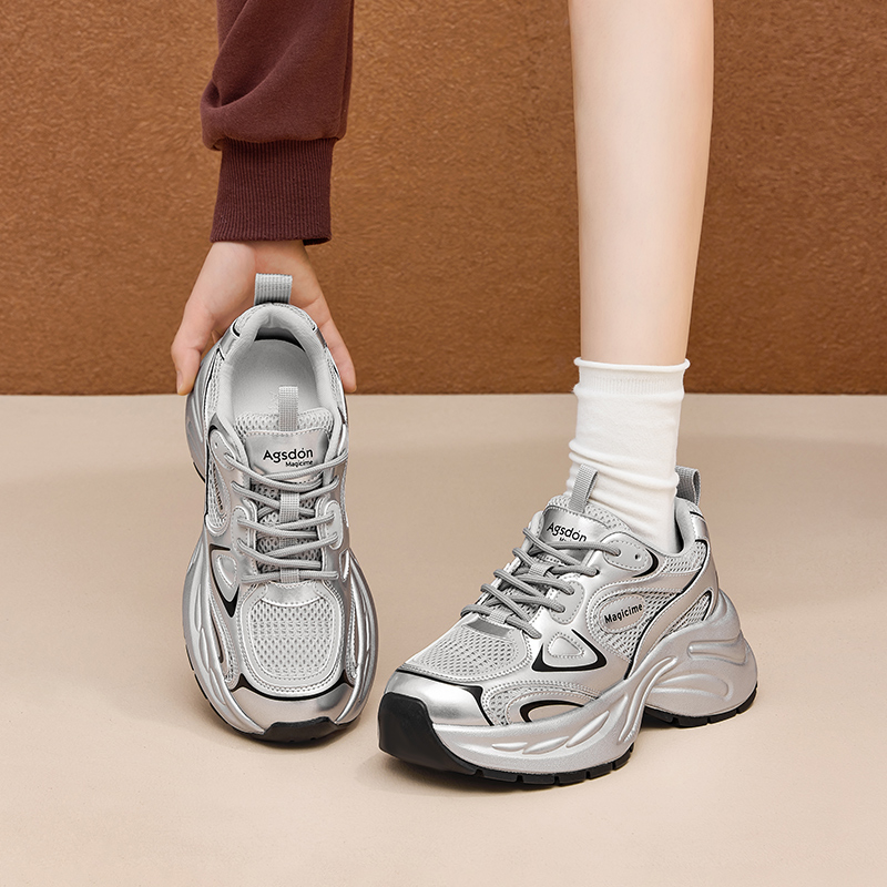 奥古狮登厚底银色增高老爹鞋女2025秋季新款鞋子女款百搭运动女鞋