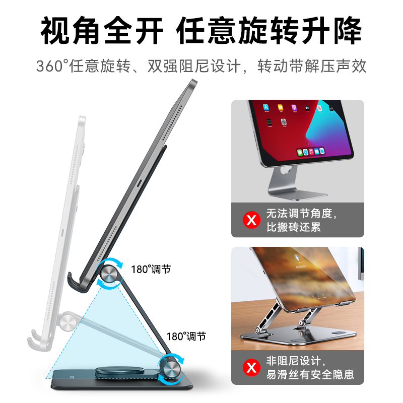 MOMAX摩米士平板支架ipad手机支撑架桌面全铝合金升降360度旋转可折叠懒人网课绘画直播看剧专用学习通用支架