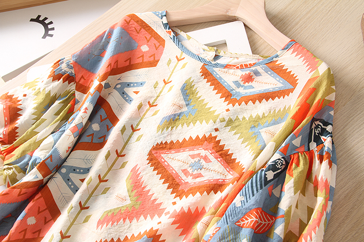 民族风!印花很好看~短袖衬衫女夏套头宽松百搭气质休闲舒适上衣