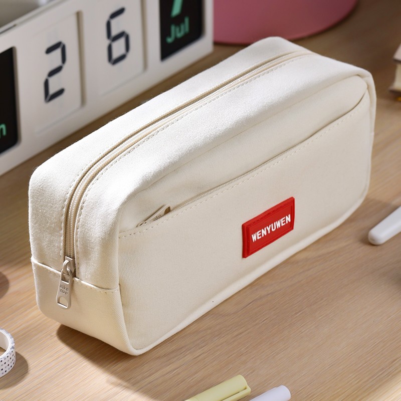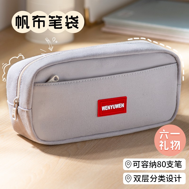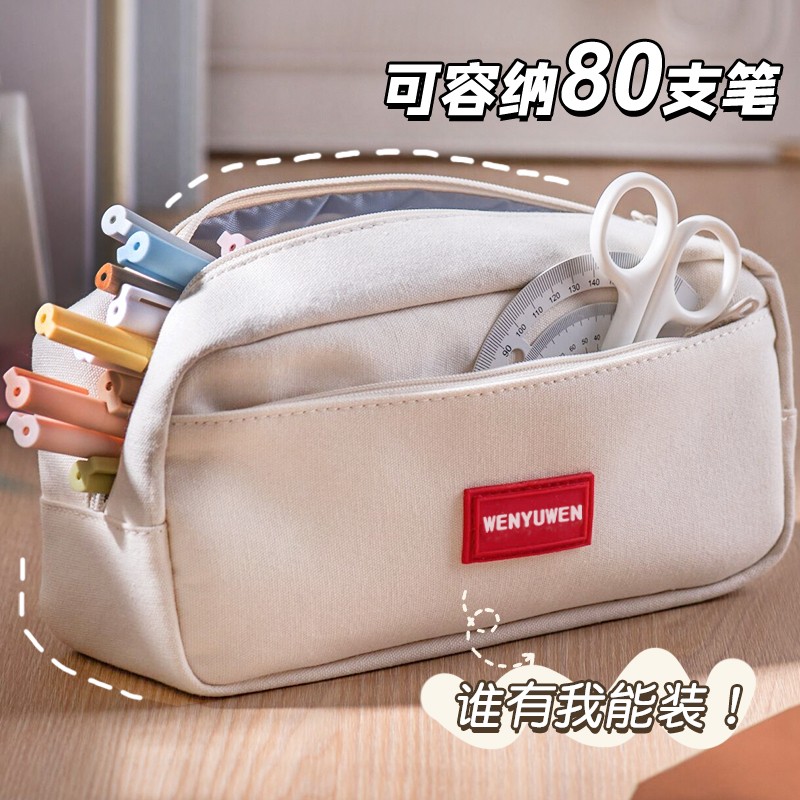 大容量笔袋男女孩子文具袋小初中学生双层收纳笔袋简约纯色铅笔盒