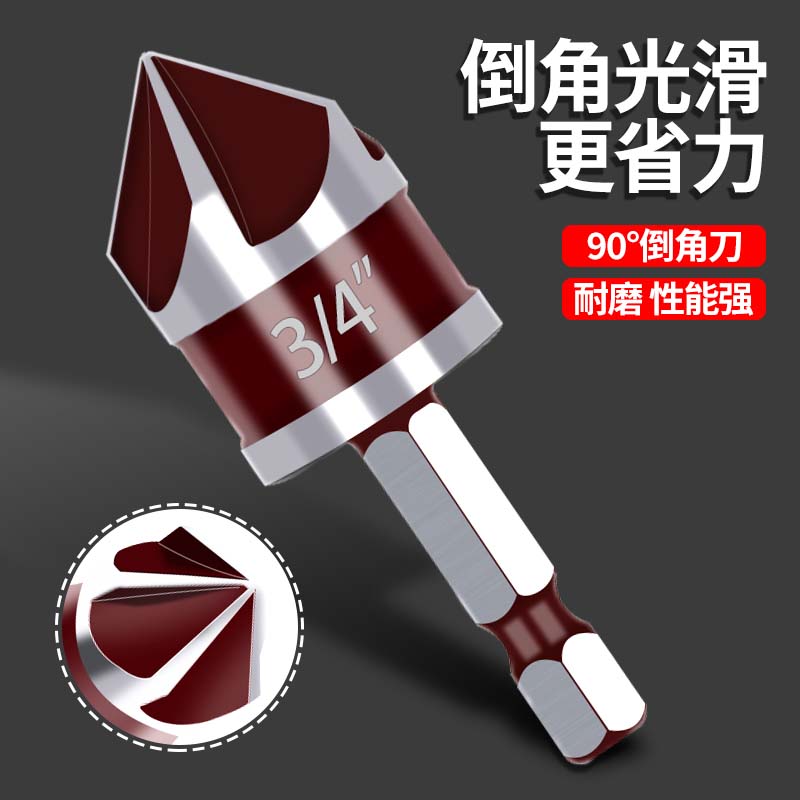 五刃倒角刀倒角器90度扩孔钻木头螺丝沉孔刀去毛刺锪钻含钴六角