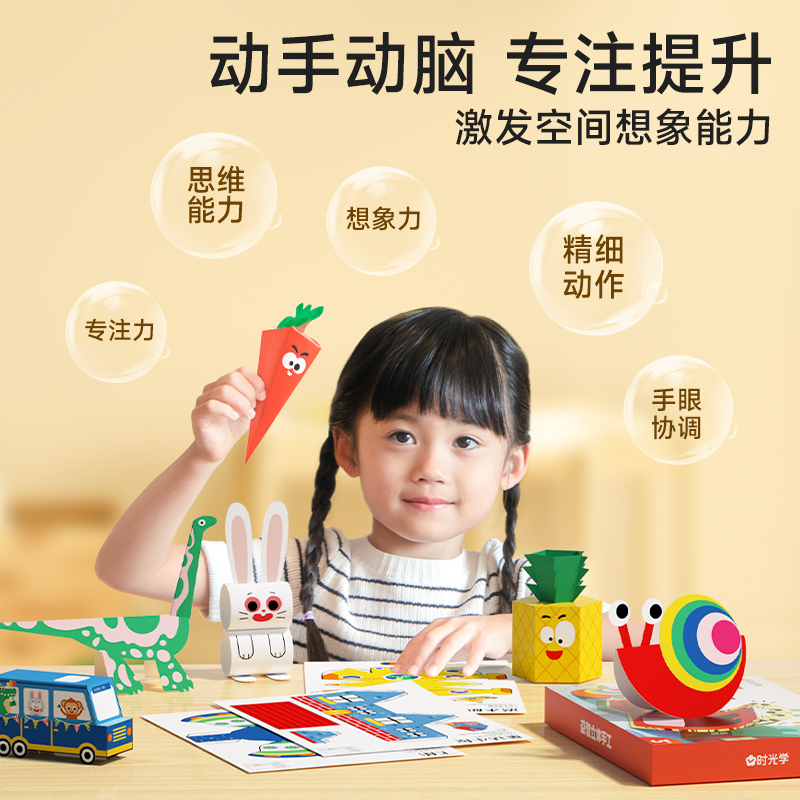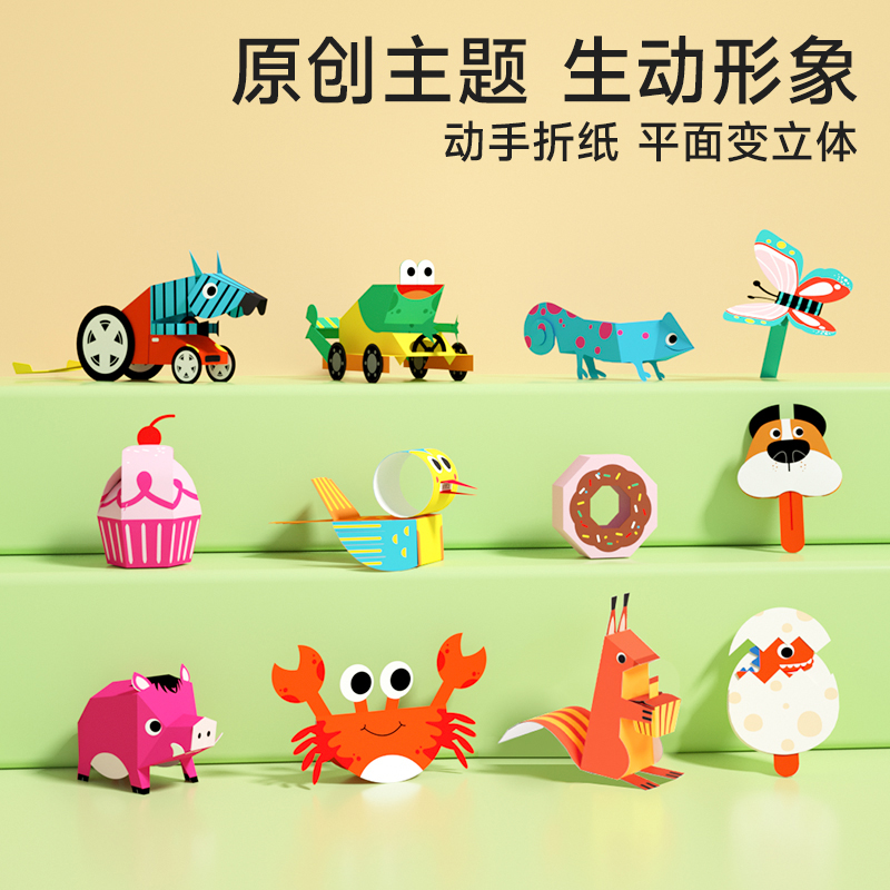 时光学益智立体手工制作折纸本思维启蒙儿童幼儿园diy专用纸创意材料3d立体趣味剪纸男女孩