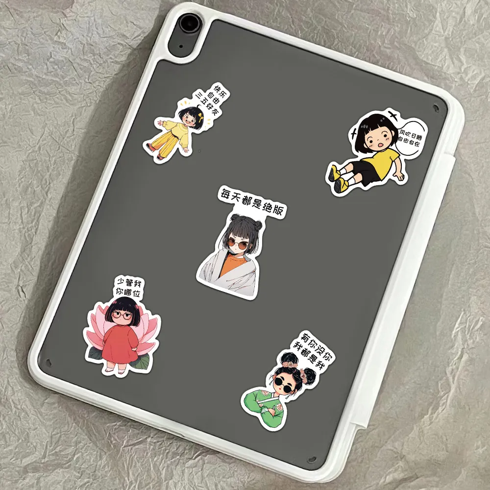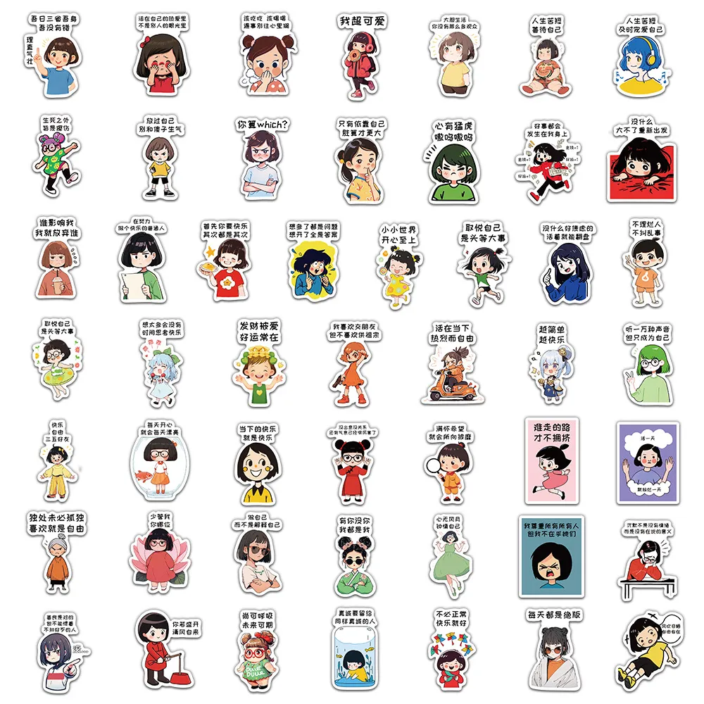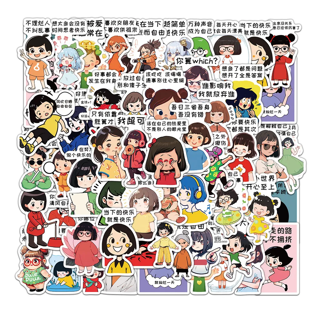 50张乐观语录反内耗文案涂鸦贴纸行李箱水杯滑板车防水手机贴画