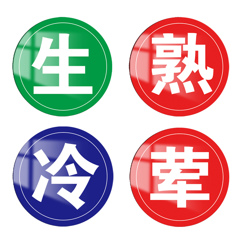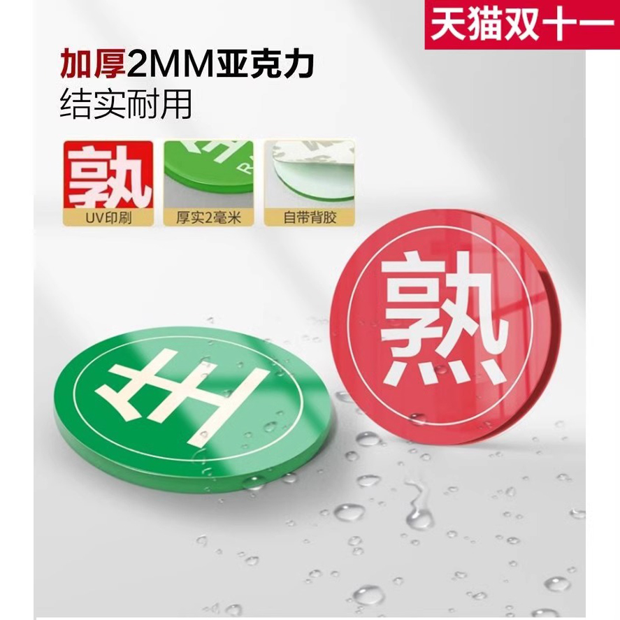 厨房生熟标识牌墙贴4D厨房管理标签酒店学校食堂冷热荤素分类提示贴标志牌水池标示贴标识牌亚克力定制标示贴
