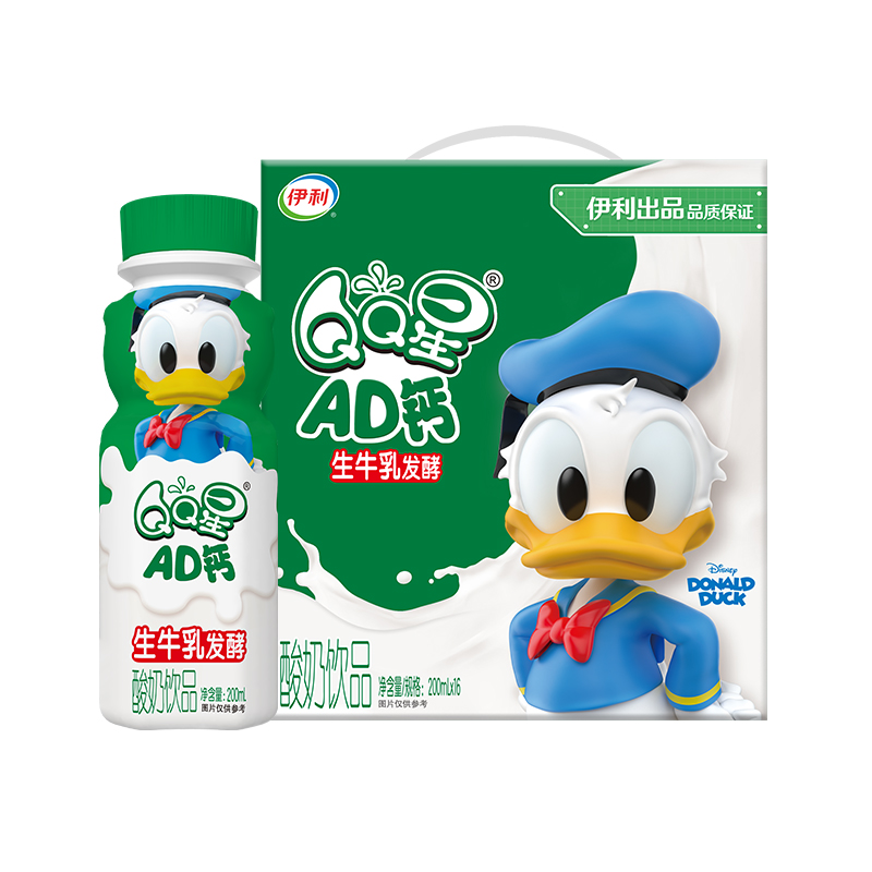 8月伊利QQ星AD钙奶含乳饮料饮品200ml*16瓶装生牛乳发酵官方正品
