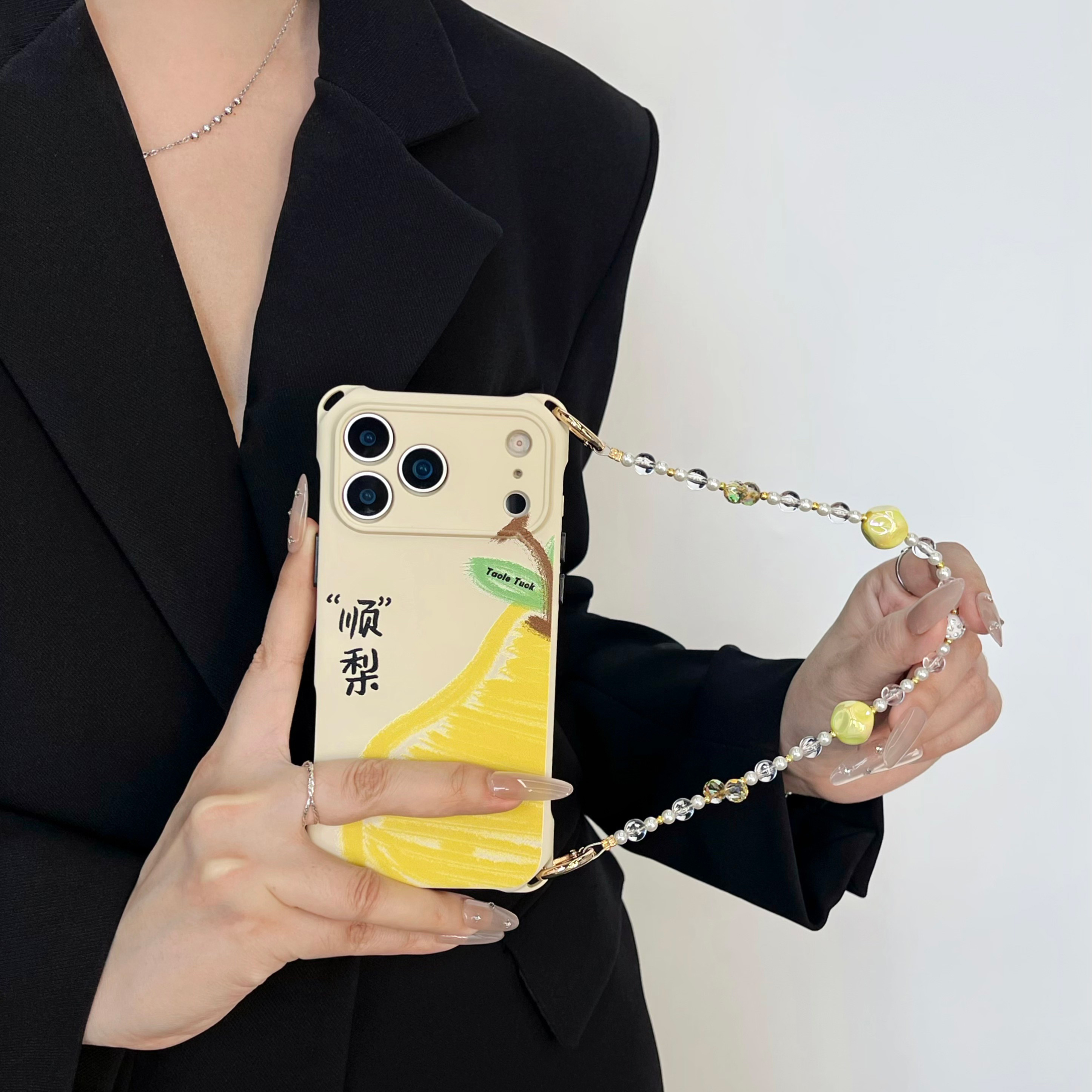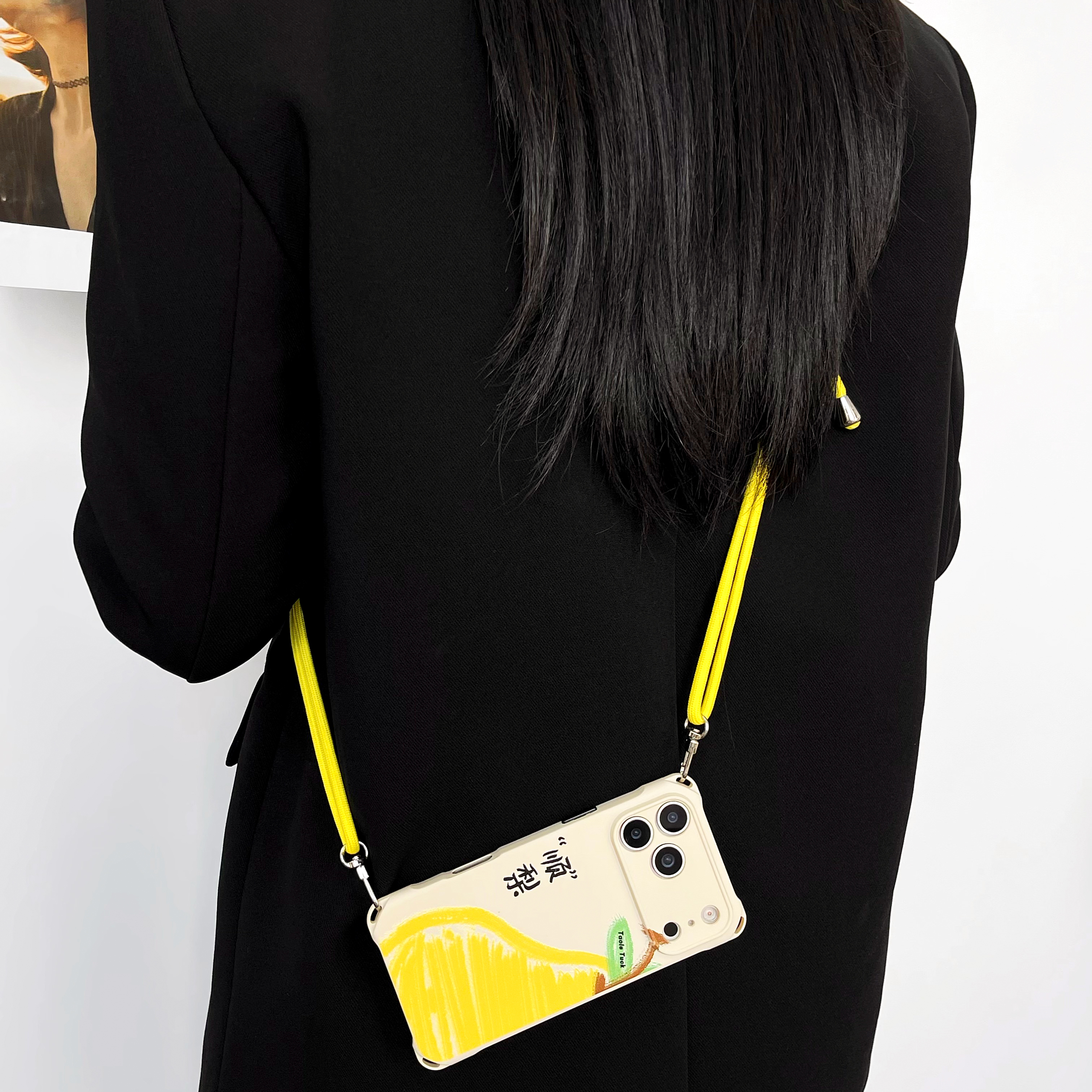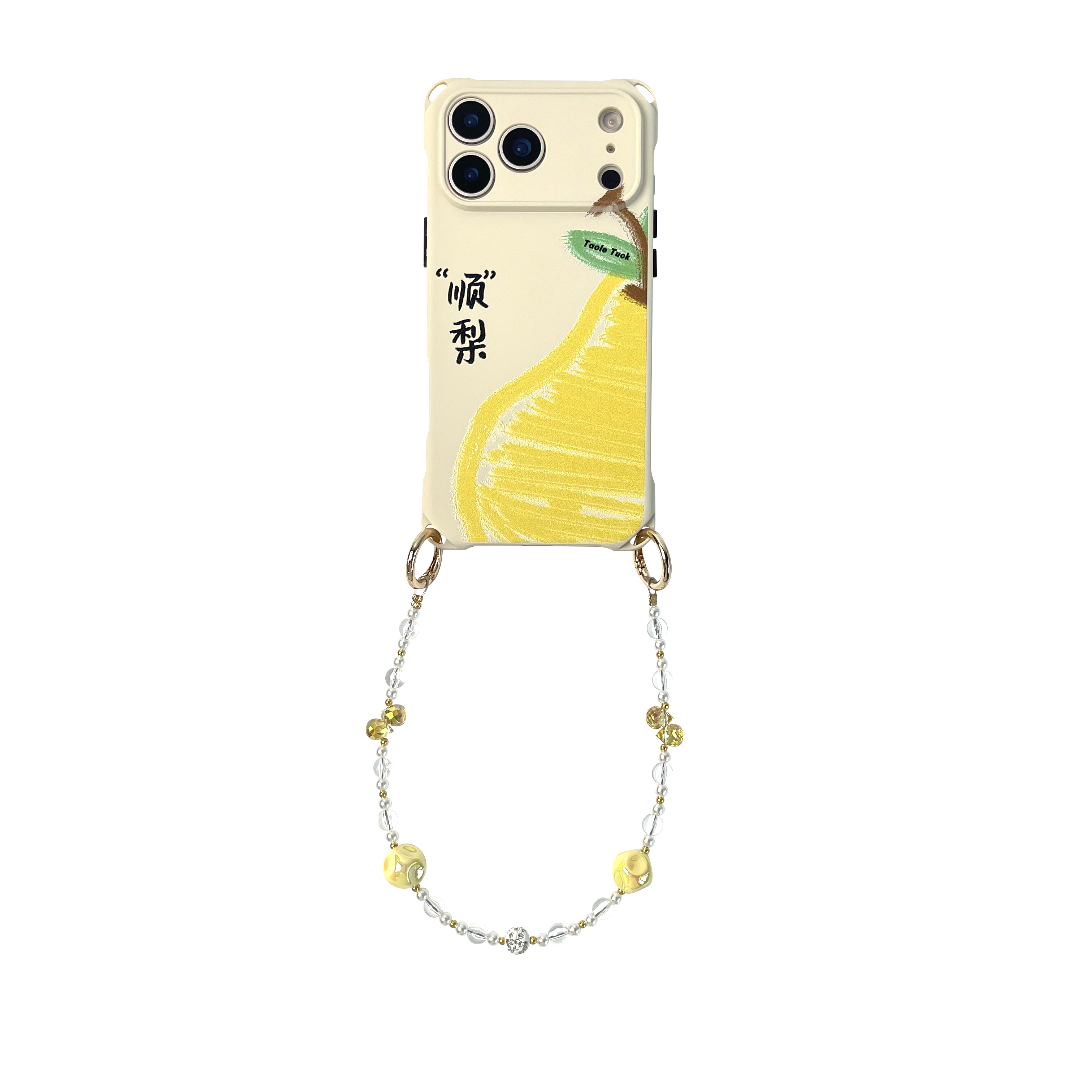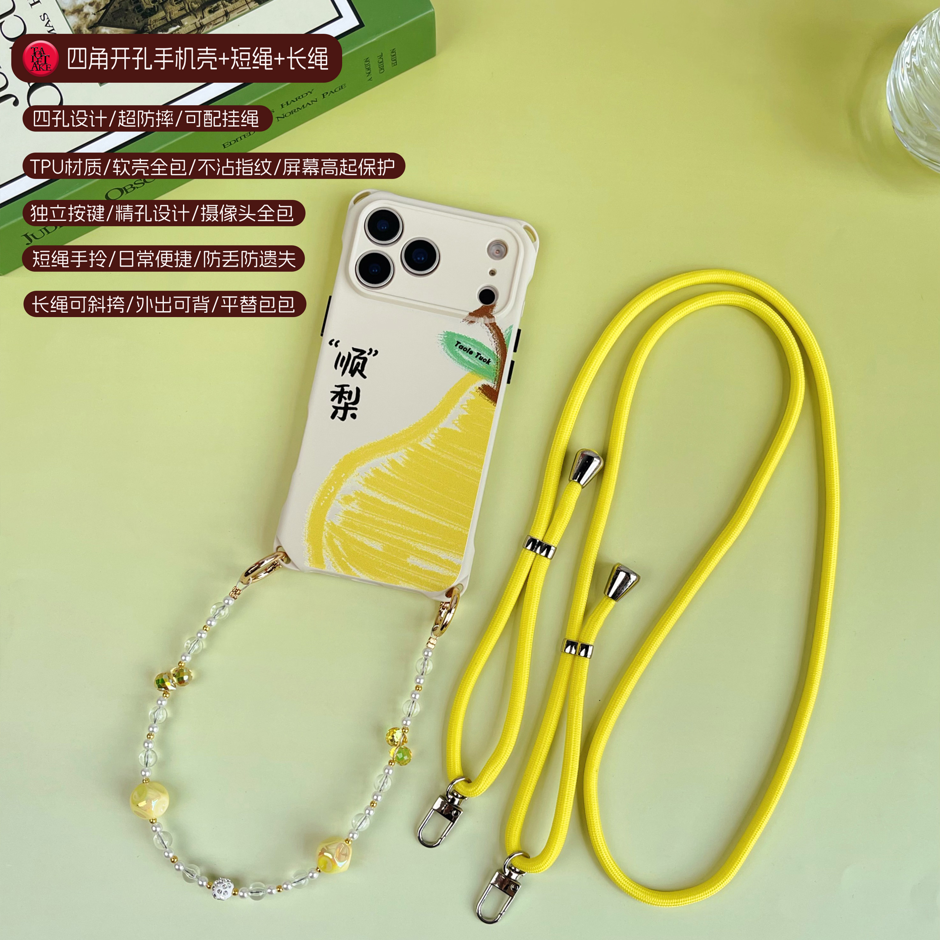 创意苹安顺梨适用苹果17Pro手机壳斜挎可背小米15ultra可调节挂绳荣耀200奶白软壳华为mate70Pro手拎全包防摔