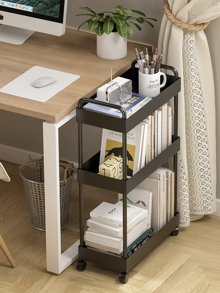 书包置物架家用多层桌下滑轮柜放书本零食收纳架可移动厨房小推车