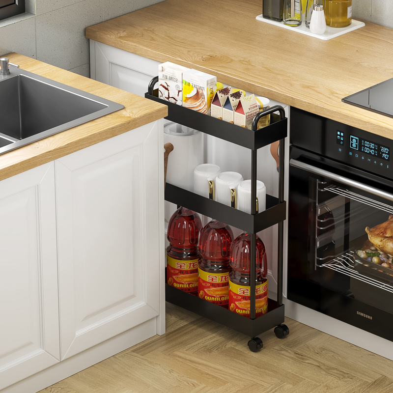 全金属夹缝置物架厨房冰箱缝隙收纳柜窄小推车可移动卫生间储物柜