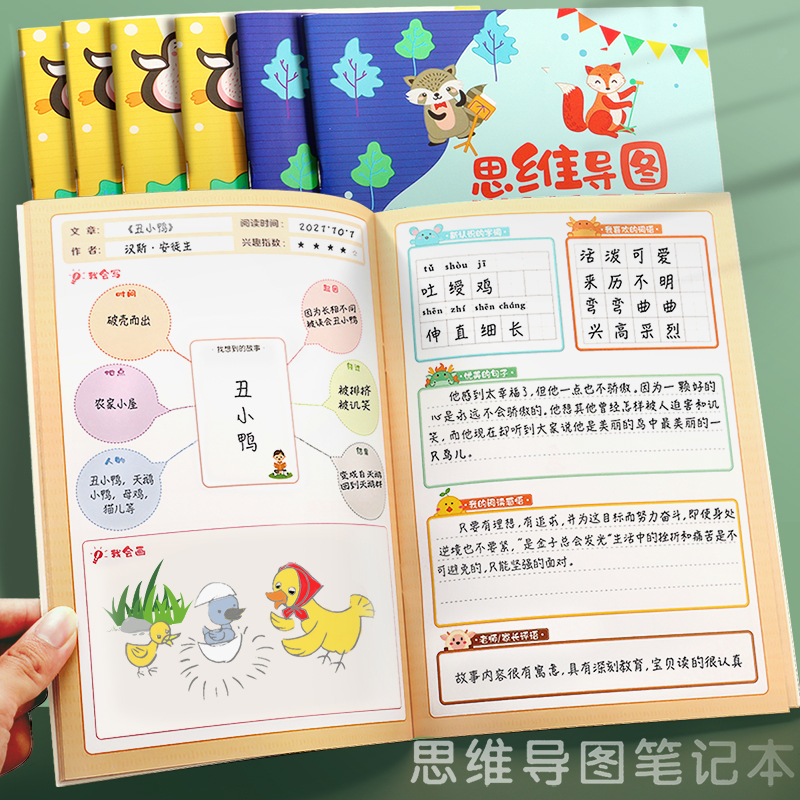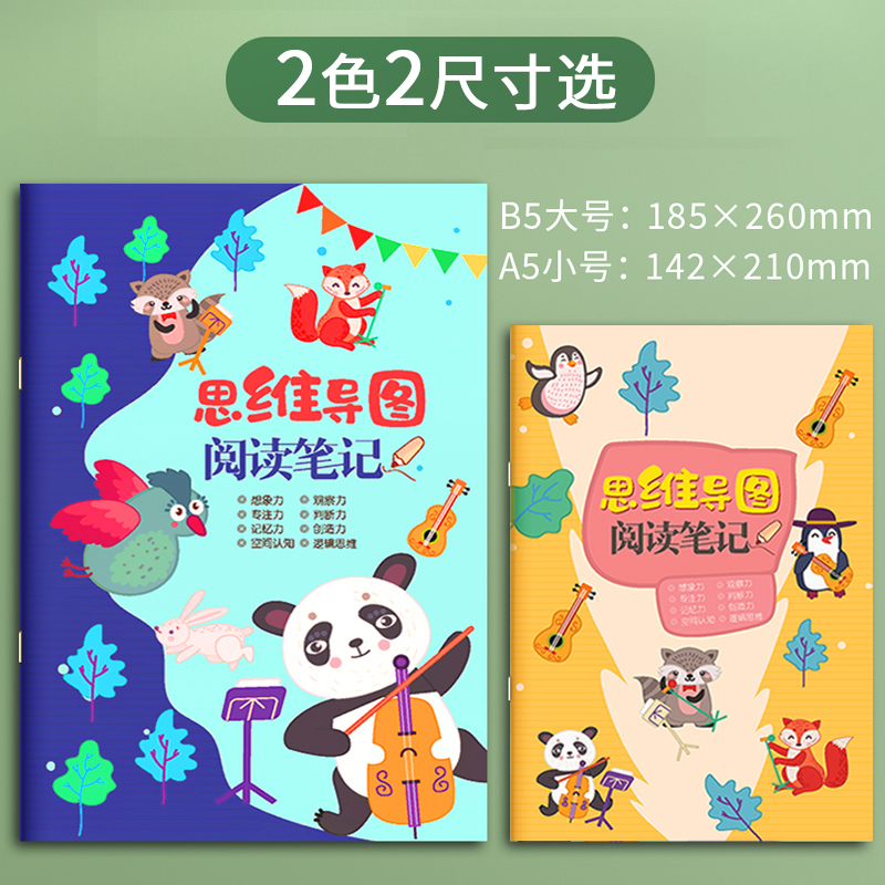 小学生思维导图笔记本子空白b5读书笔记本专用摘抄本阅读记录卡摘记儿童一二年级三年级语文课外看图写话定制