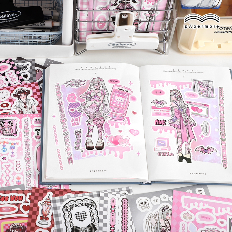 咕卡贴纸手帐贴纸本大张咕卡贴纸素材本手账大形咕咔超大甜酷儿童女孩ins贴纸人物人形贴纸黑暗风装饰贴画本