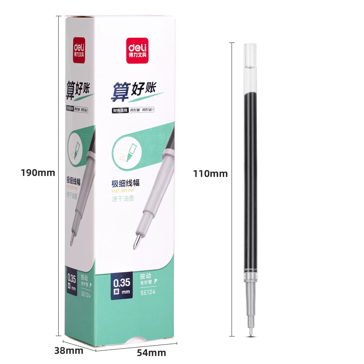 得力速干按动中性笔芯0.35mm全针管财务办公记账签字笔会计专用做账登记中性笔黑芯极细水笔书写顺滑实用