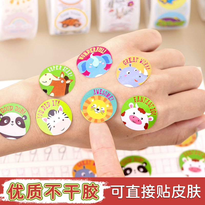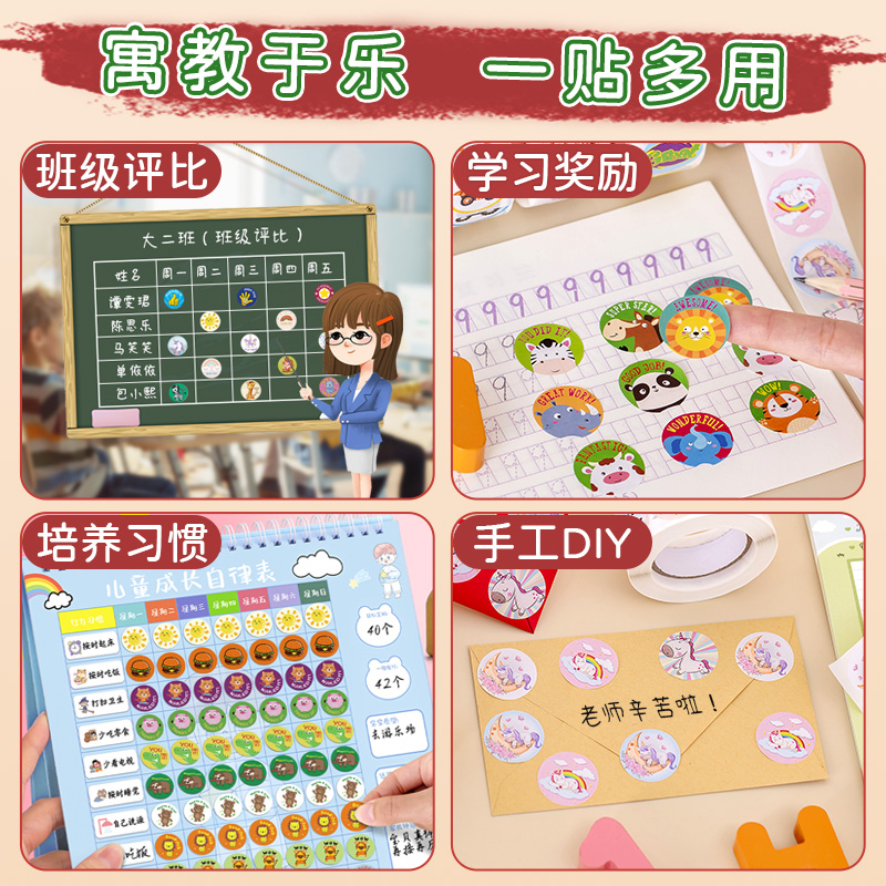 儿童奖励贴纸受老师表扬贴小学生幼儿园小红花自律表粘贴纸动物圆形卡通星星装饰小图案小女孩不干胶小贴画纸
