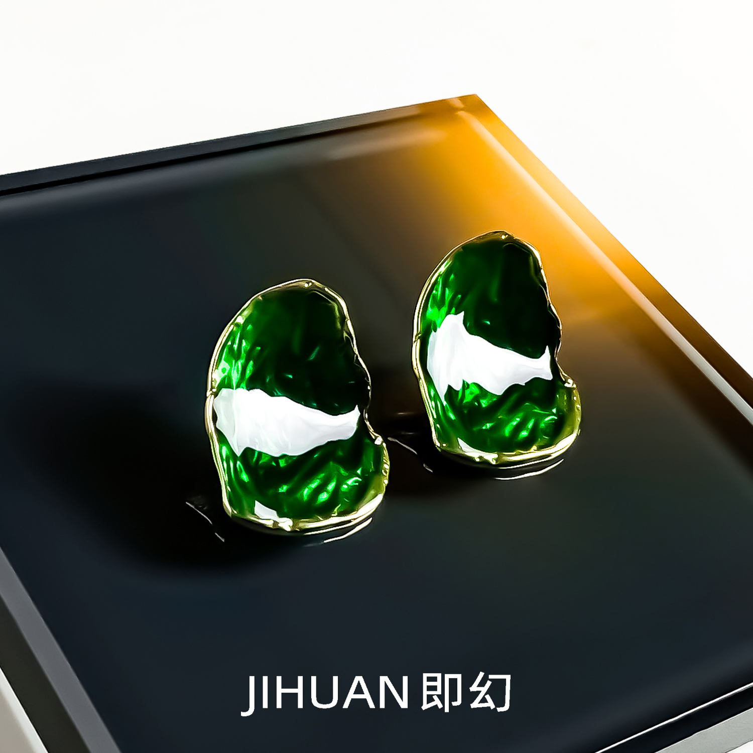 即幻不规则耳环高级感女款中古绿是小众设计独特夸张法式个性耳饰