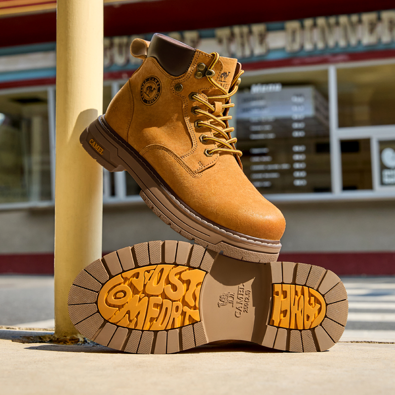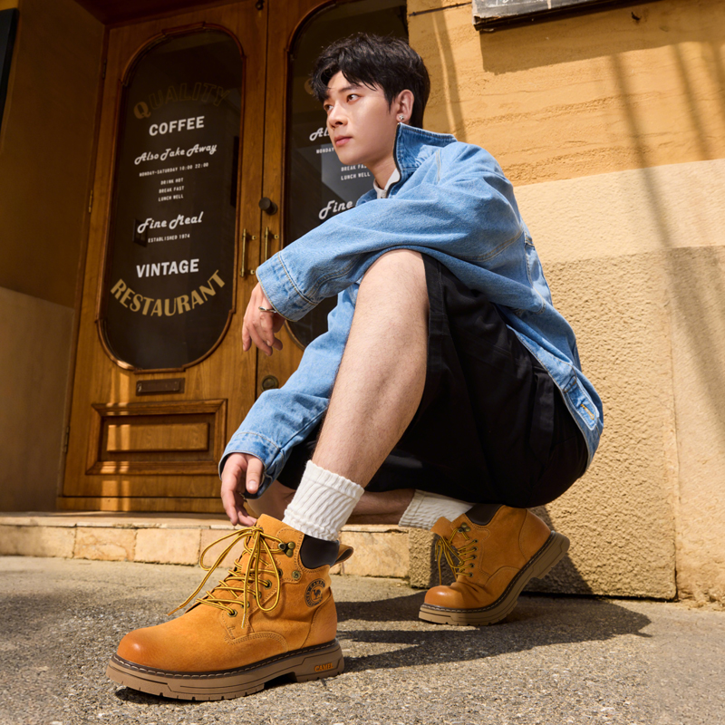 骆驼男鞋马丁靴2025秋季新款美式复古大黄靴增高户外高帮工装靴男