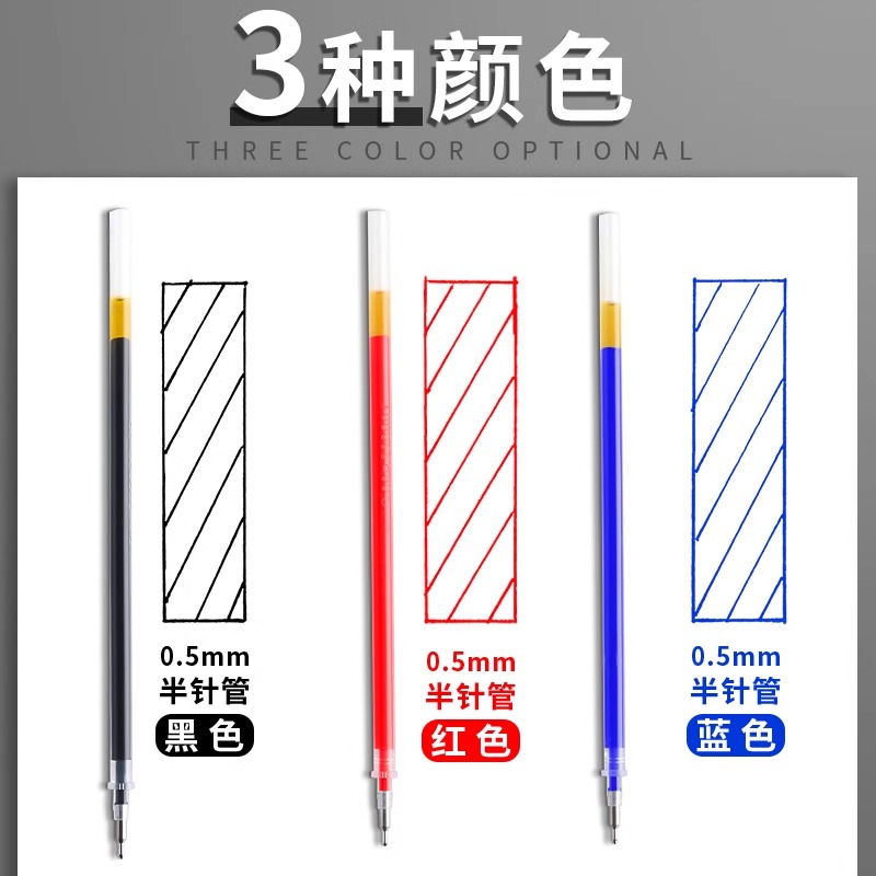晨光笔芯120支装半针管中性笔芯0.5全针管考试专用子弹头水笔黑色笔学生用办公签字替芯蓝色碳素笔文具葫芦头
