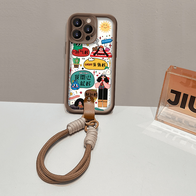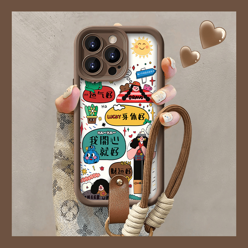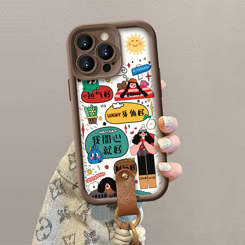 身体好我开心就好适用苹果16/15/14手机壳华为Pura70pro新款mate60美拉德OPPO挂绳vivos19x100套iQOOz8小米14