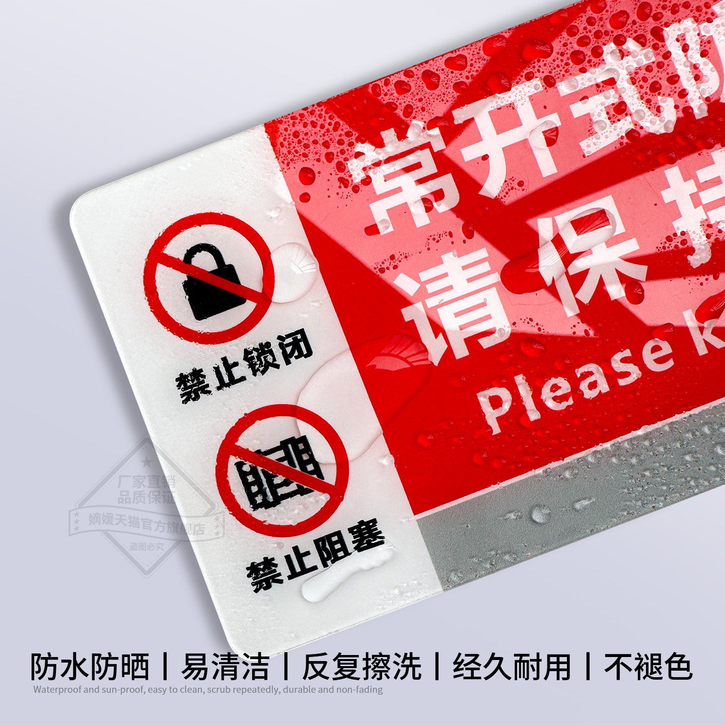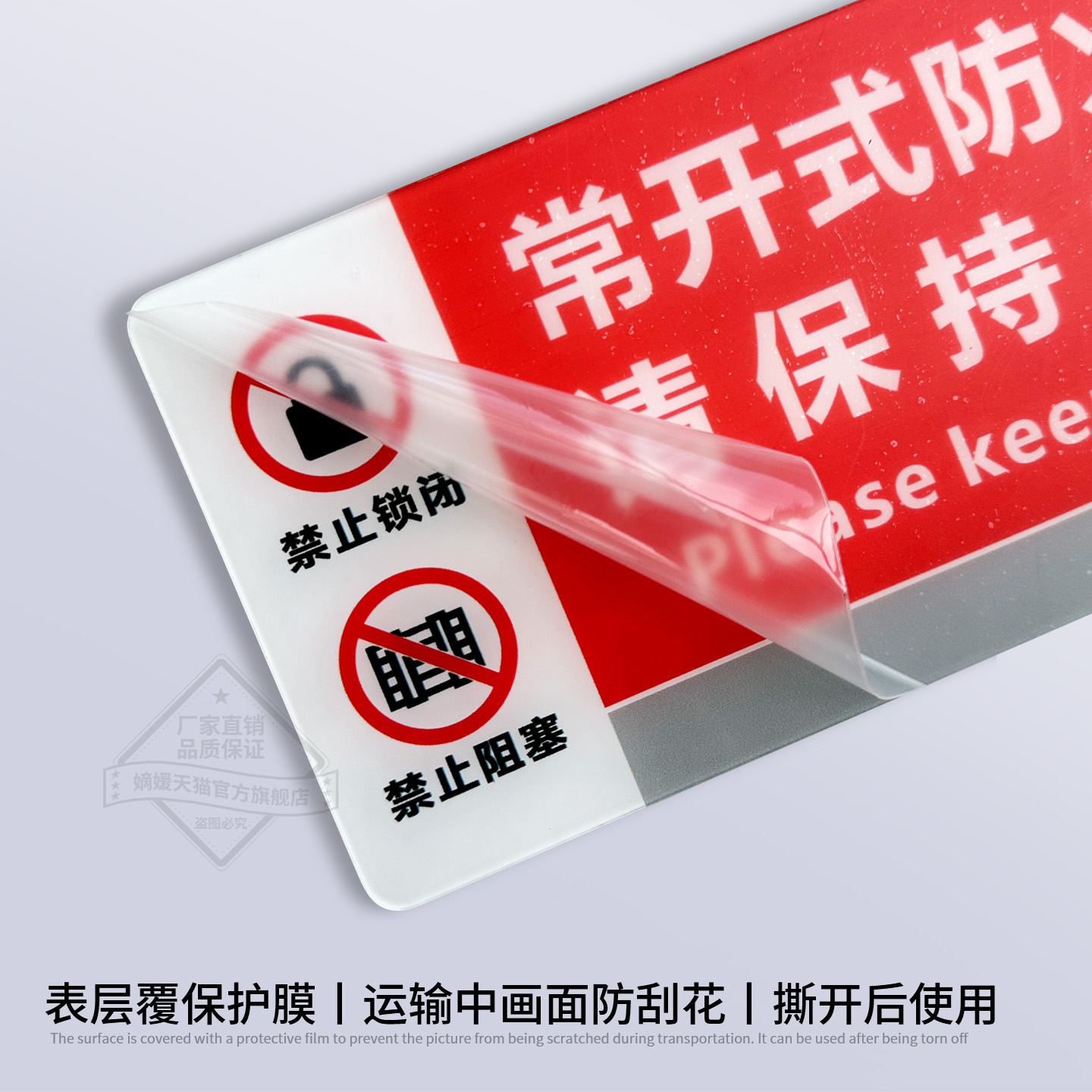 亚克力常闭式常开式防火门请保持关闭标识牌消防通道严禁堵占防火卷帘门下禁止堆物