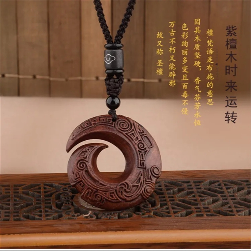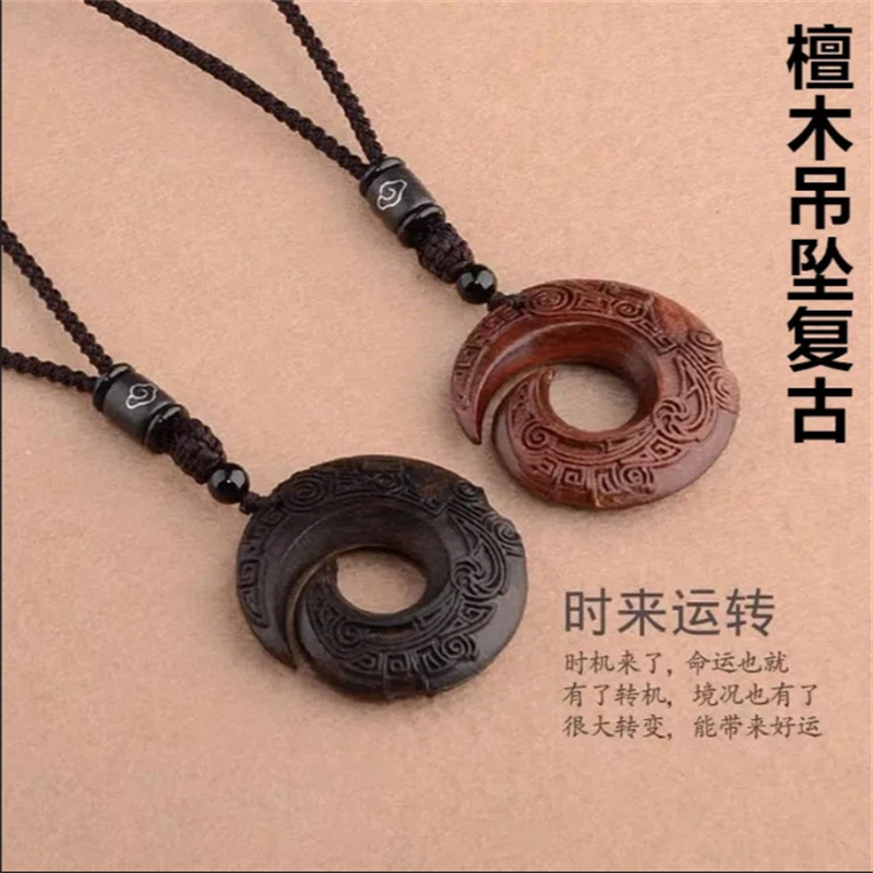 黑檀木项链紫檀木吊坠时来运转长款百搭男女民族风菩提配饰新品促