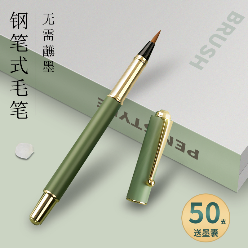 兰斋钢笔式毛笔软笔纯狼毫小楷自带墨水软头笔初学套装抄经书法笔楷书自动加墨水毛笔秀丽笔便携墨囊科学毛笔