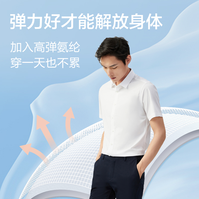 罗蒙无痕冰丝衬衫短袖男士夏季商务休闲弹力抗皱透气薄款上衣衬衣