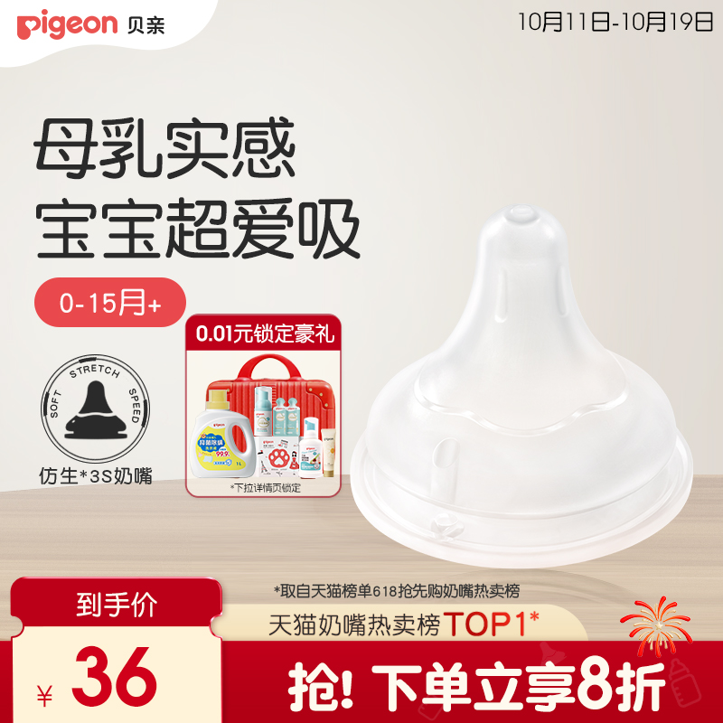 Pigeon贝亲奶嘴婴儿宽口径奶嘴畅吸实感3代启衔硅胶宝宝奶嘴