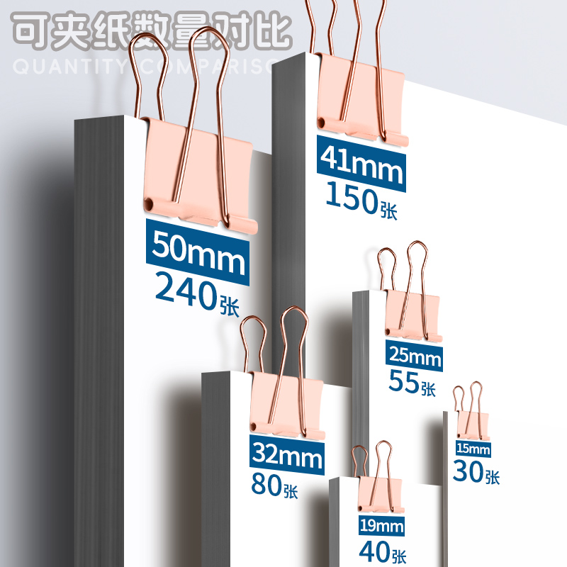 长尾夹燕尾夹不锈钢夹子银色办公文件夹子金色小号大号反尾夹电镀玫瑰金金属票据夹文件收纳整理凤尾夹桶装