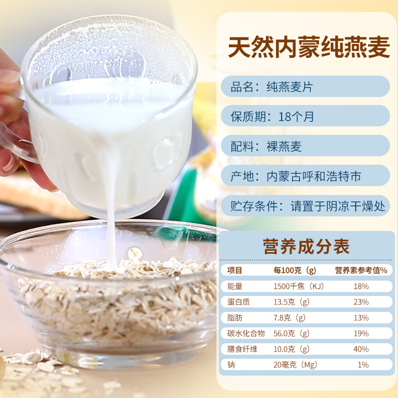 阴山优麦纯燕麦片有机裸燕麦孕妇无添加蔗糖营养早餐即食冲饮麦片