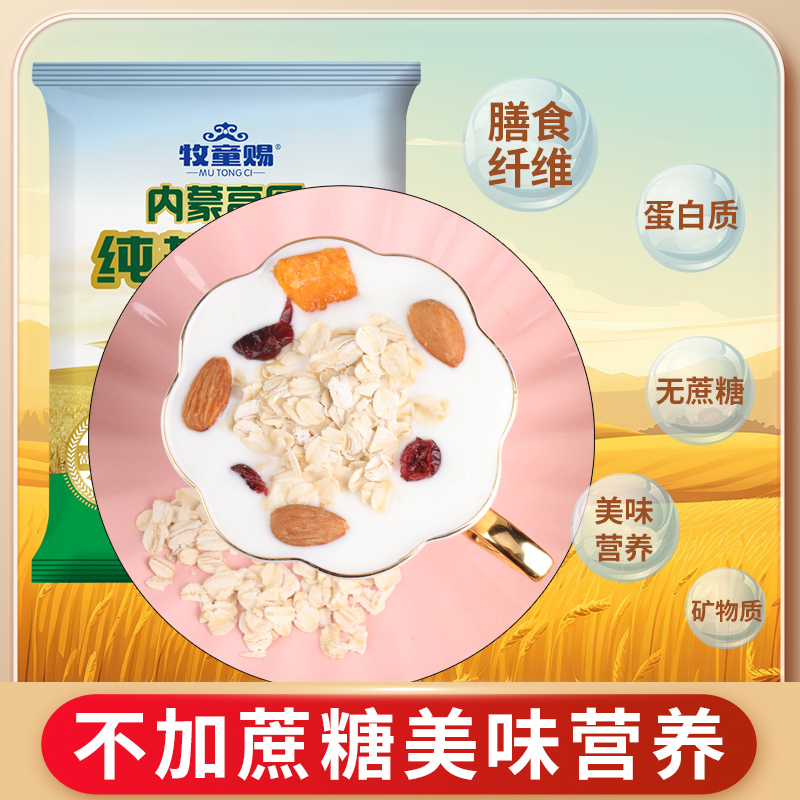 牧童赐内蒙古高原纯燕麦片500克富含膳食纤维冲饮早餐