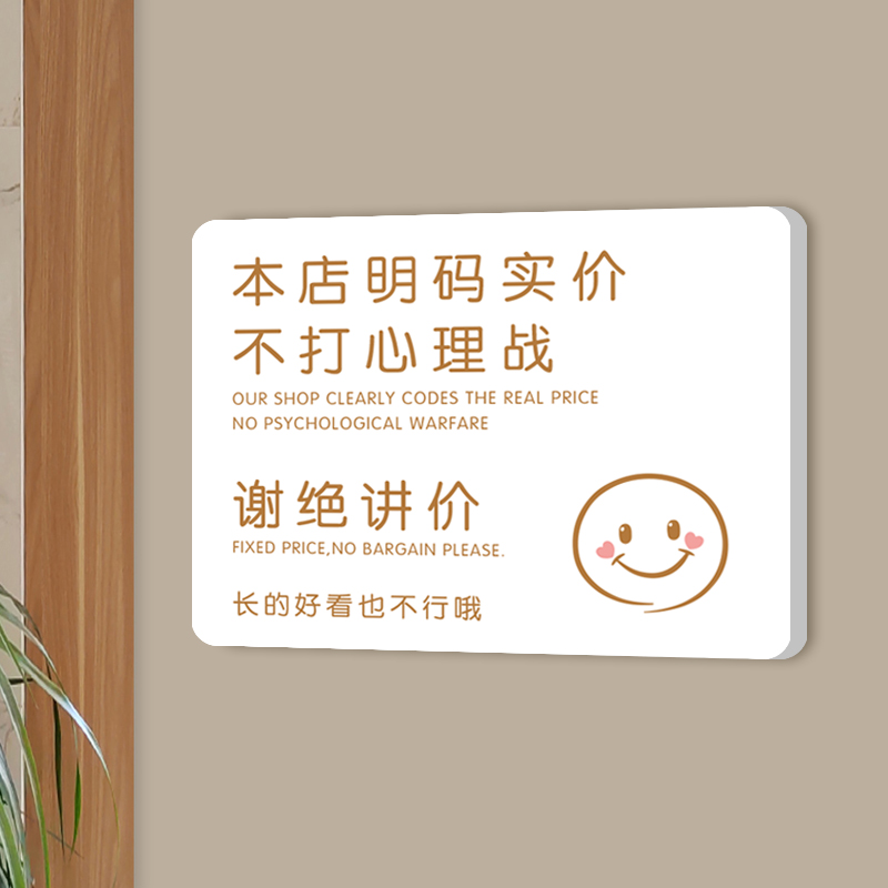 定制谢绝还价不赊账商品概不退换温馨提示标识牌创意店铺装饰墙贴