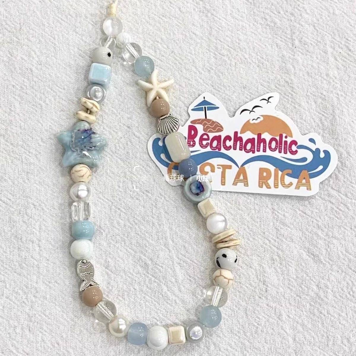 夏日海风星星diy手工串珠链手机壳手机链清新ccd挂绳挂饰相机蓝色