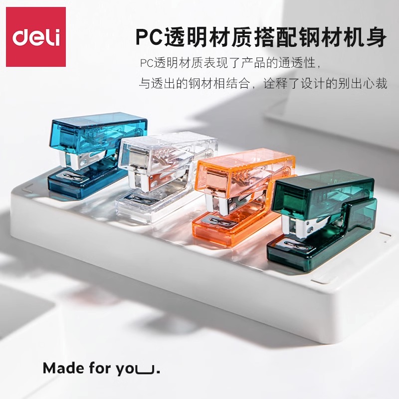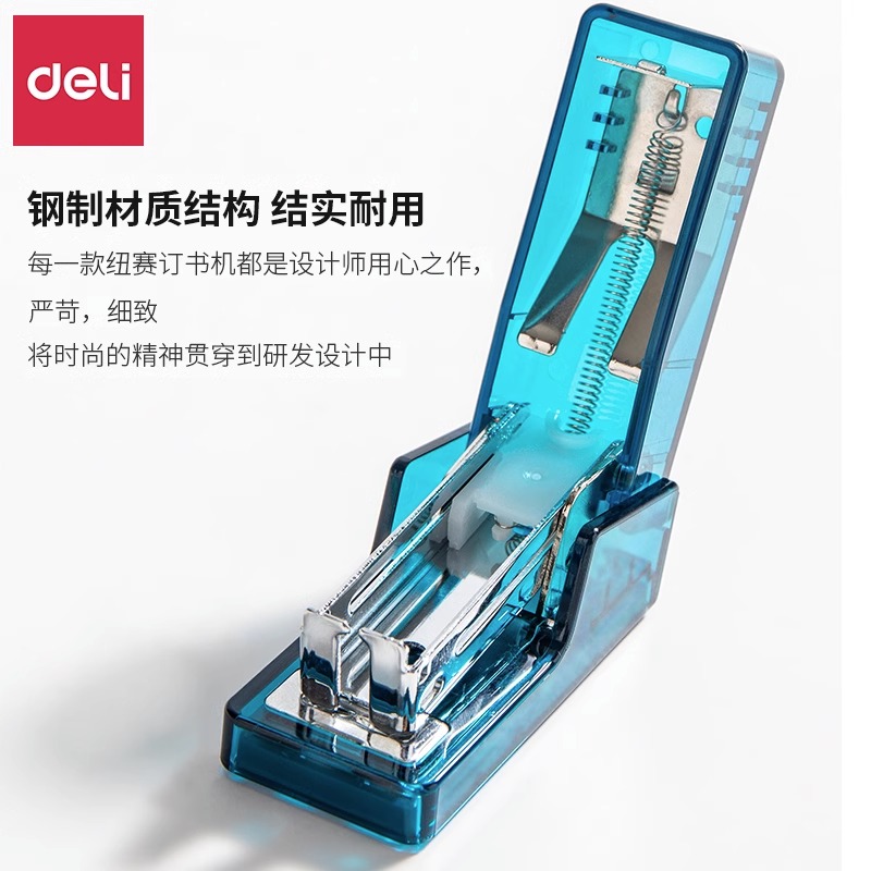 得力纽赛订书机学生用迷你小号订书机起钉器便携式办公用手握式省力订书器小巧多功能家用可爱抹苔绿清雾粉