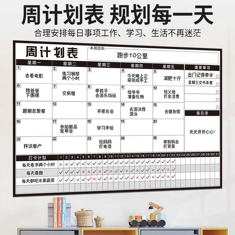 每周计划表作息时间表日程规划课程表磁性学习工作自律打卡墙贴