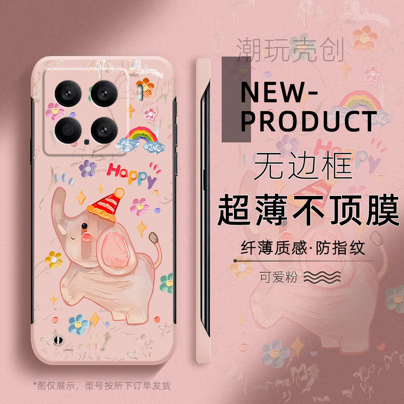 适用于小米15pro手机壳快乐大象油画涂鸦14ULTRA新款12Spro半包不顶膜11超薄无边框mi13防摔个性CIVI4PRO硬壳