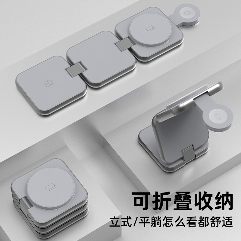 三合一无线充电器快充Magsafe磁吸支架适用苹果16手机iPhone15promax铝合金iwatch手表apple耳机桌面折叠底座